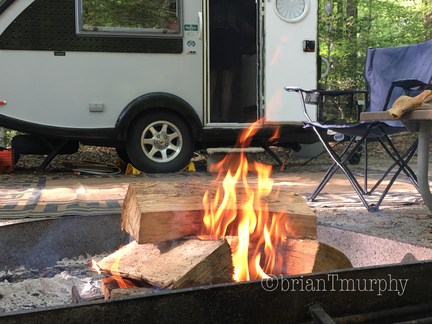 We enjoyed the cool mornings and the warmth of our little “Puff” teardrop trailer. The ALDE heating system worked great, as did the gas stove and water system. This was our first multi-night non-electric campout, and we were able to easily manage our power usage over two days. We cooked both inside and outside, including delicious steak kabobs on the campfire.
